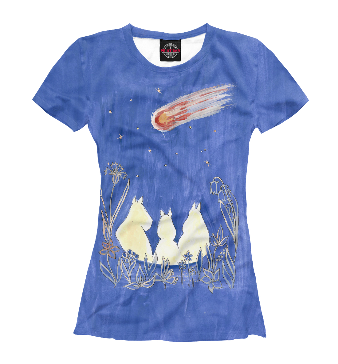 Детская футболка для девочки с принтом «Муми-тролли и комета»