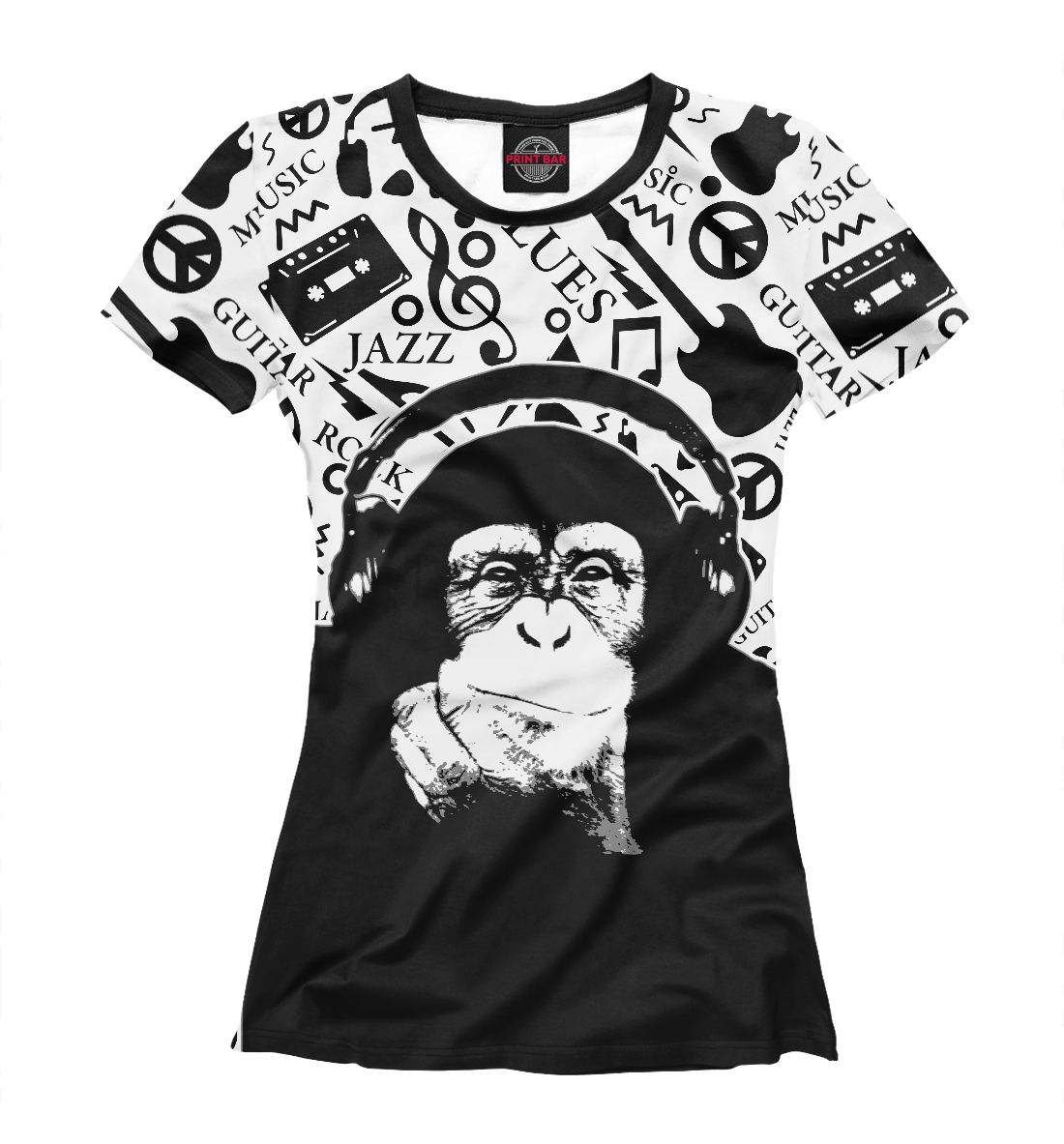 Детская футболка для девочки с принтом «Шимпанзе в наушниках»