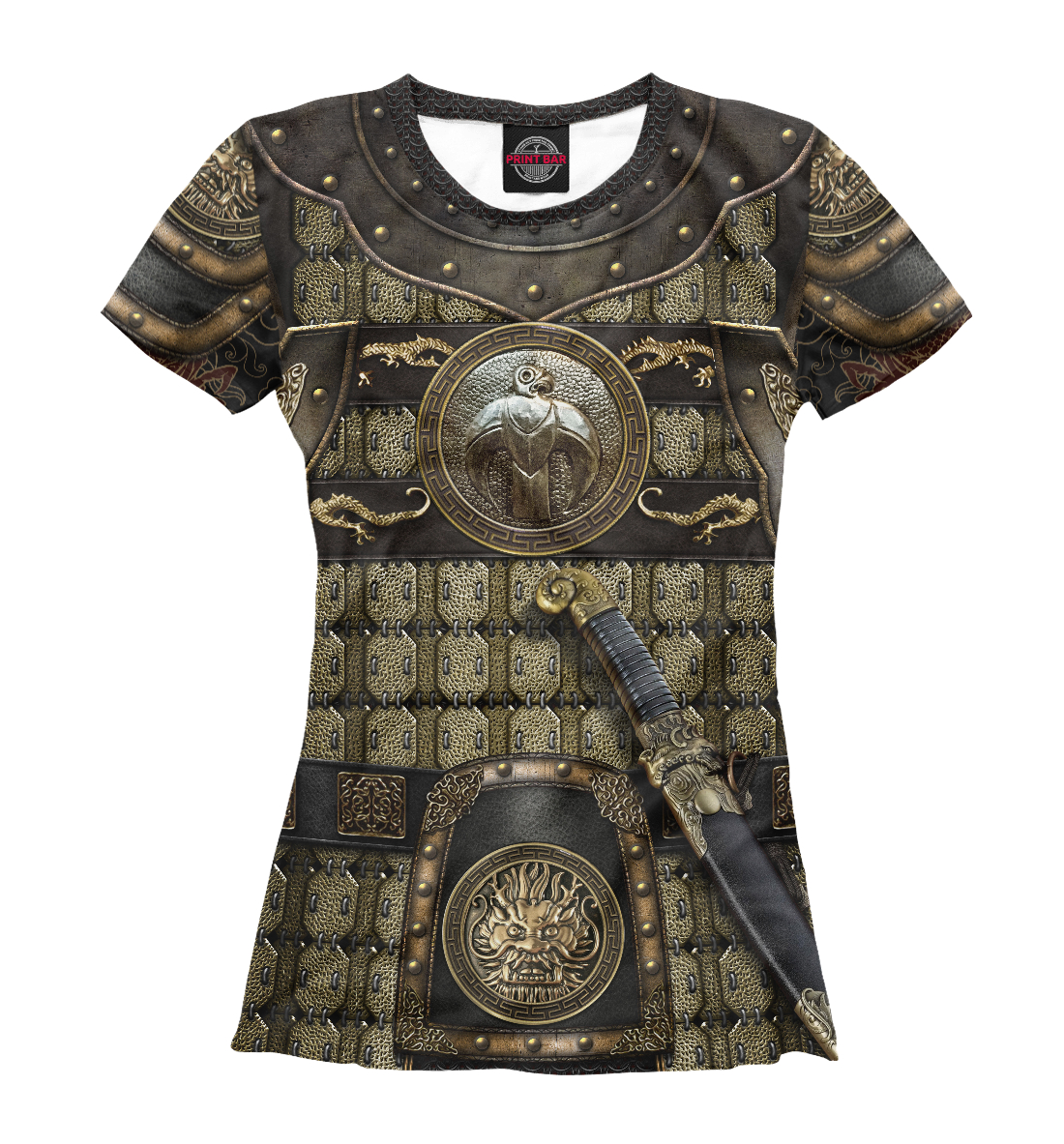 Детская футболка для девочки с принтом «Золотые доспехи Чингисхана»