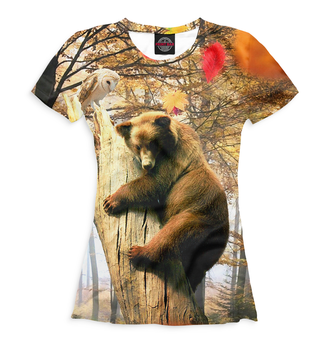 Детская футболка для девочки с принтом «Медведь на дереве»