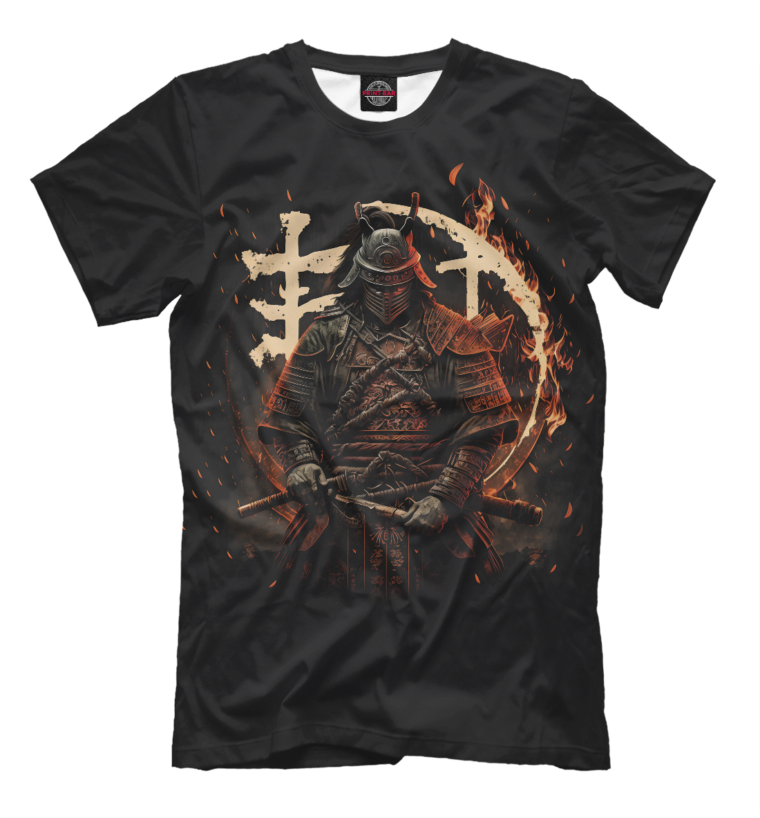 Детская футболка для мальчика с принтом «Самурай и иероглифы»