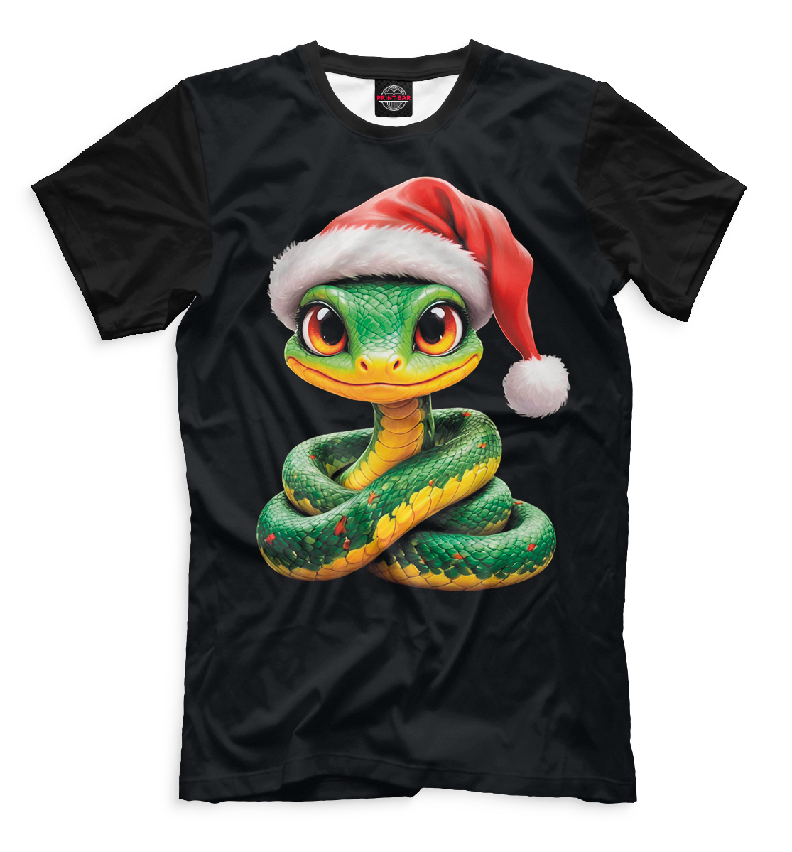 Детская футболка для мальчика с принтом «Новогодняя змея на черном фоне»