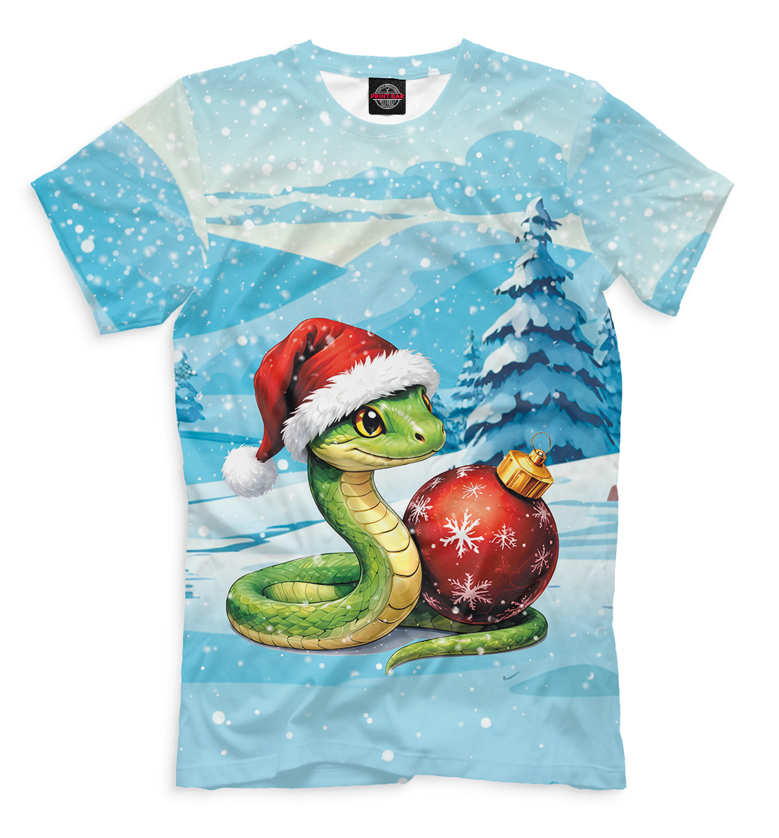 Детская футболка для мальчика с принтом «Змея в новогодней шапке»