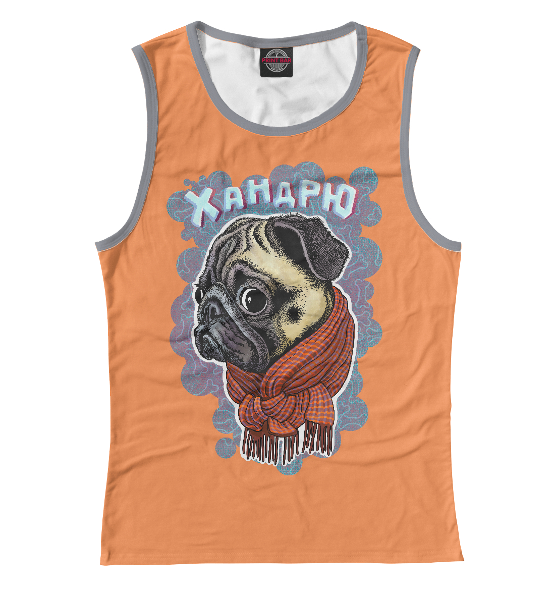 Детская майка для девочки с принтом «Грустный мопс в шарфике»