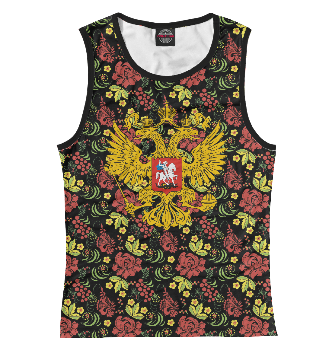 Детская майка для девочки с принтом «Хохломская роспись и герб России»