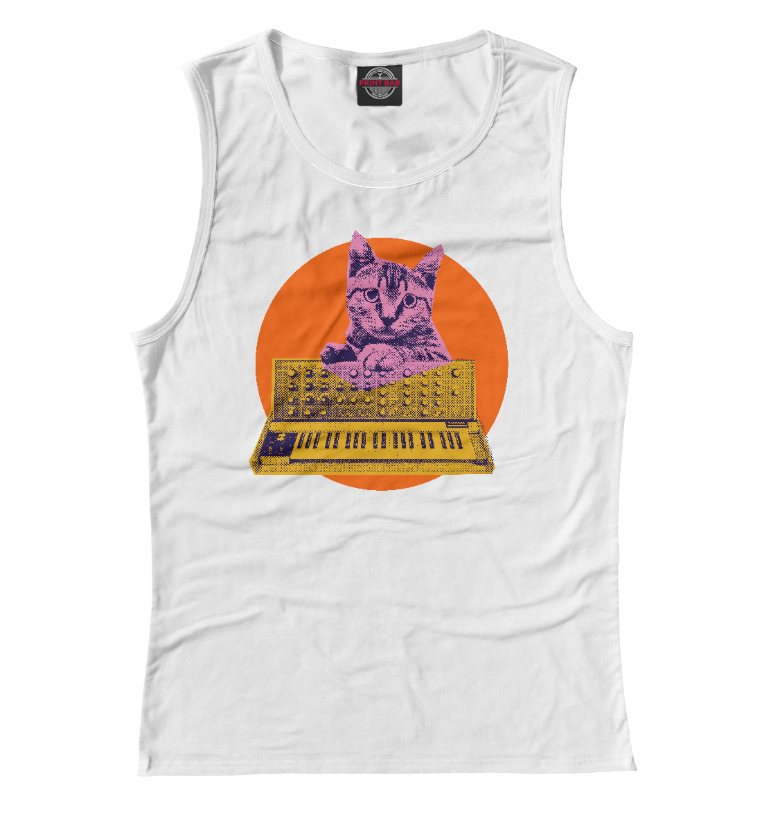 Детская майка для девочки с принтом «Кот с синтезатором»