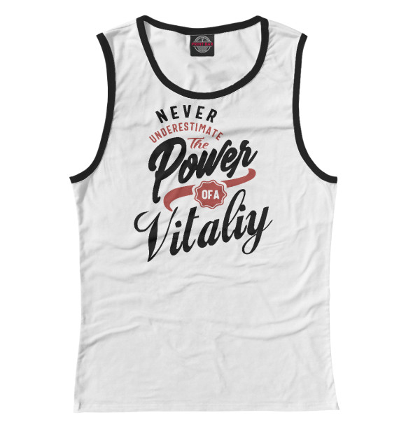 Детская майка для девочки с принтом «Недооценивай силу Виталия»