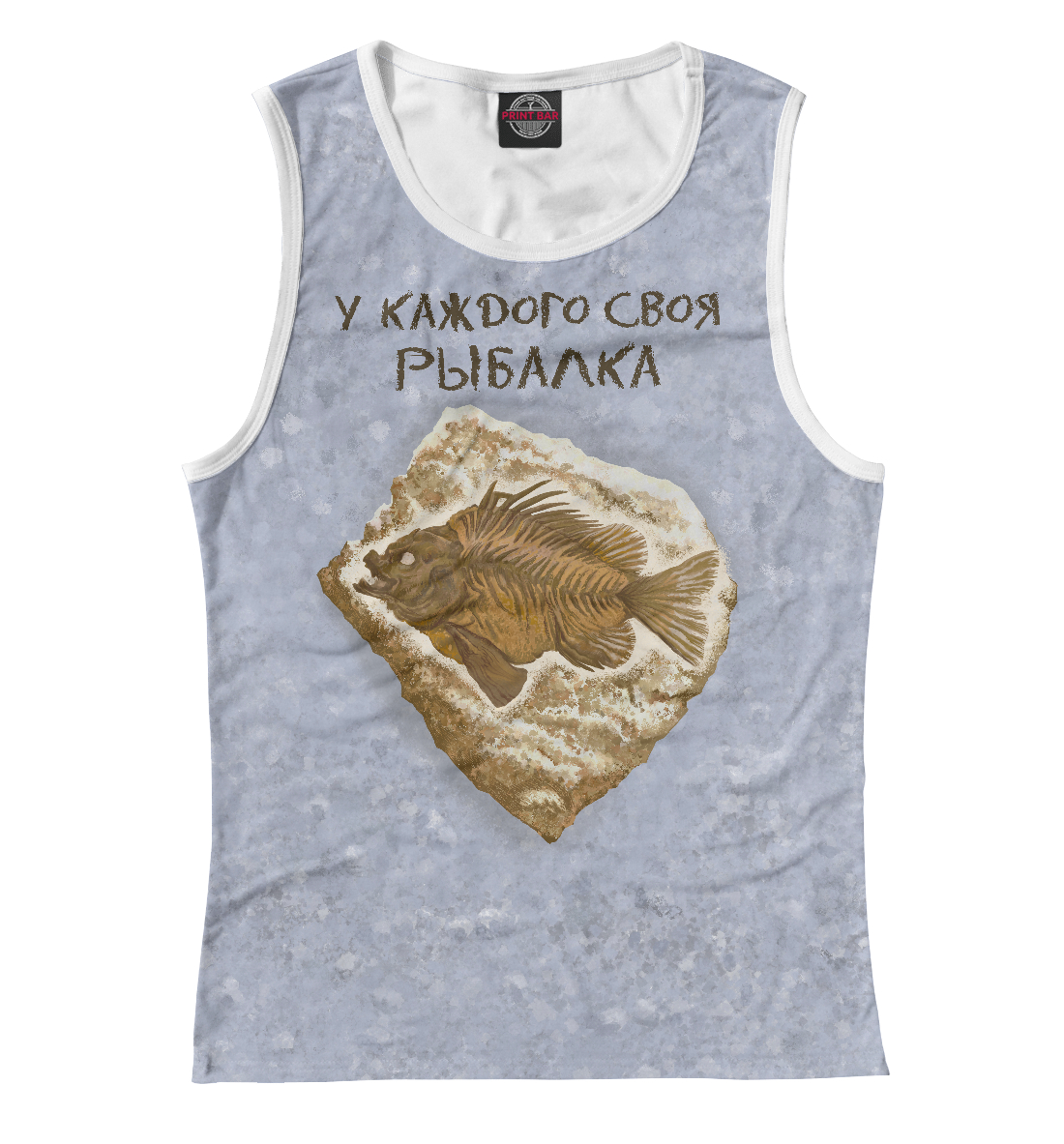 Детская майка для девочки с принтом «Окаменелая рыба на камне на сером фоне»