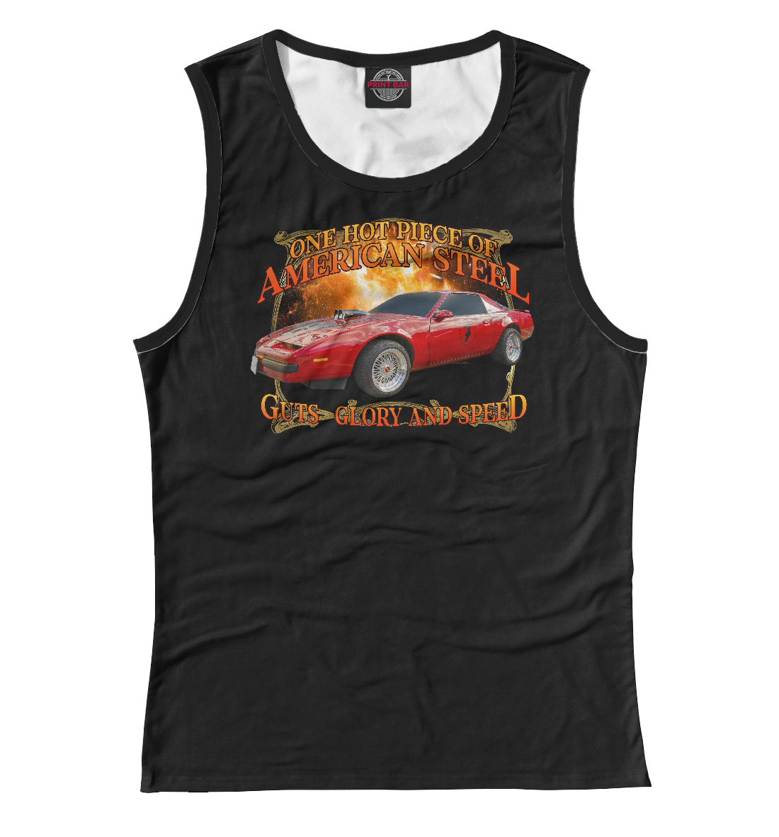 Детская майка для девочки с принтом «Ретро маслкар Firebird на черном фоне»