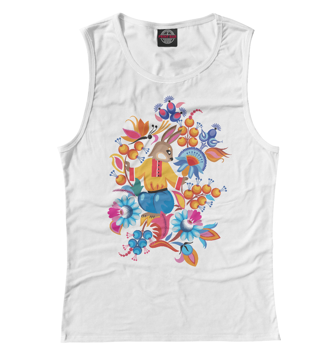 Детская майка для девочки с принтом «Русский народный с зайчиком»