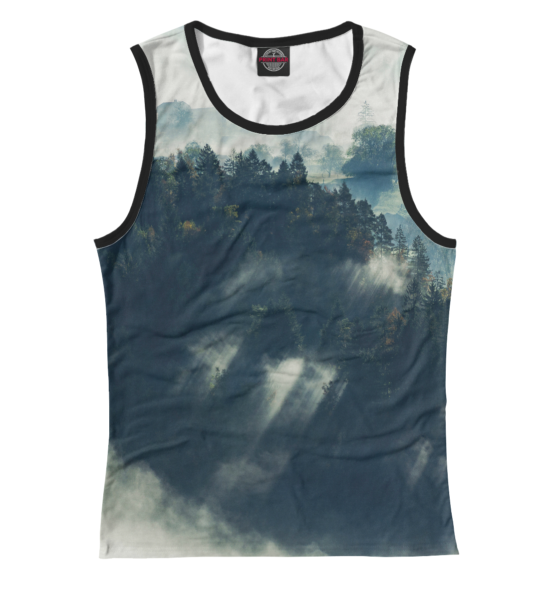 Детская майка для девочки с принтом «Туманный лес. Лучи солнца»