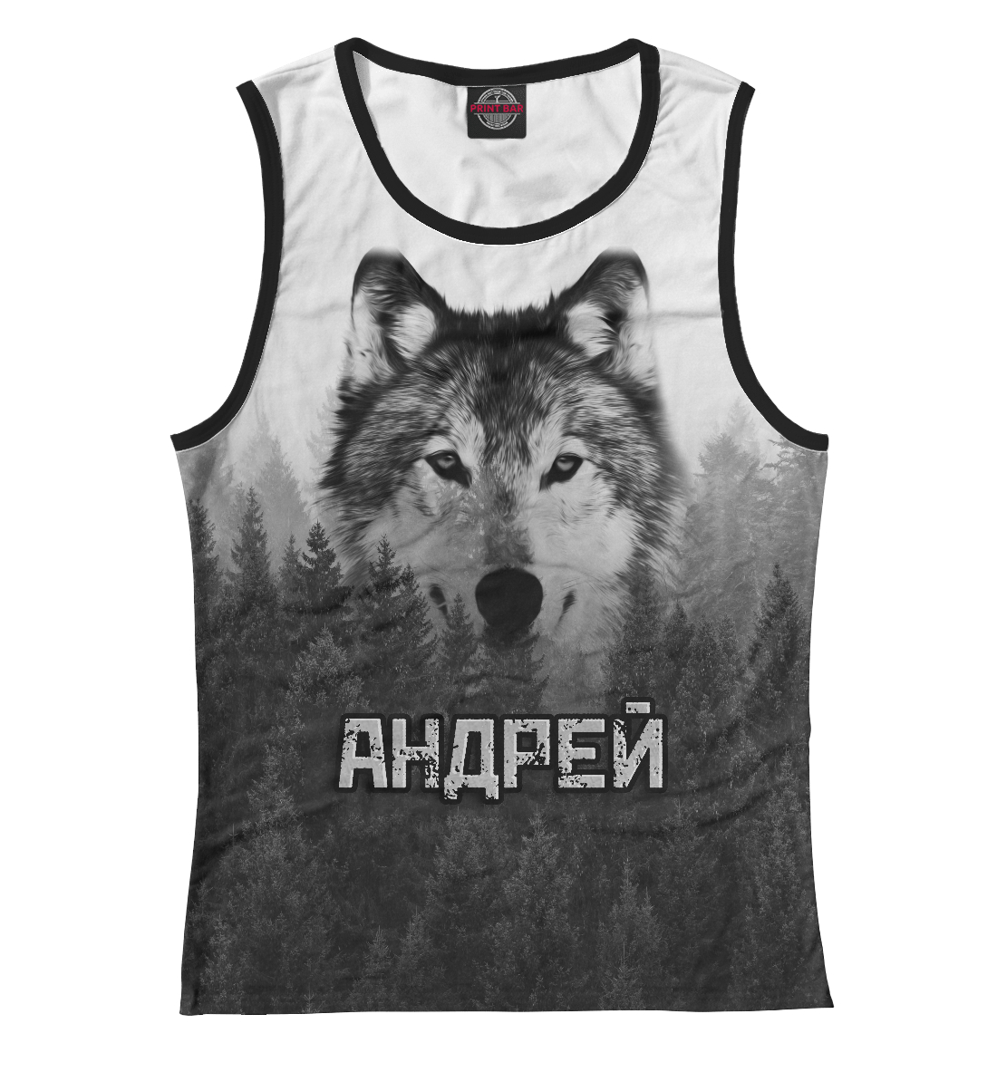 Детская майка для девочки с принтом «Волк над лесом - Андрей»