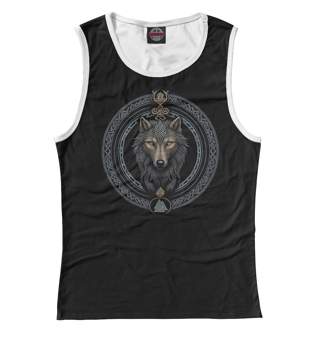 Детская майка для девочки с принтом «Волк талисман с валькнутом»
