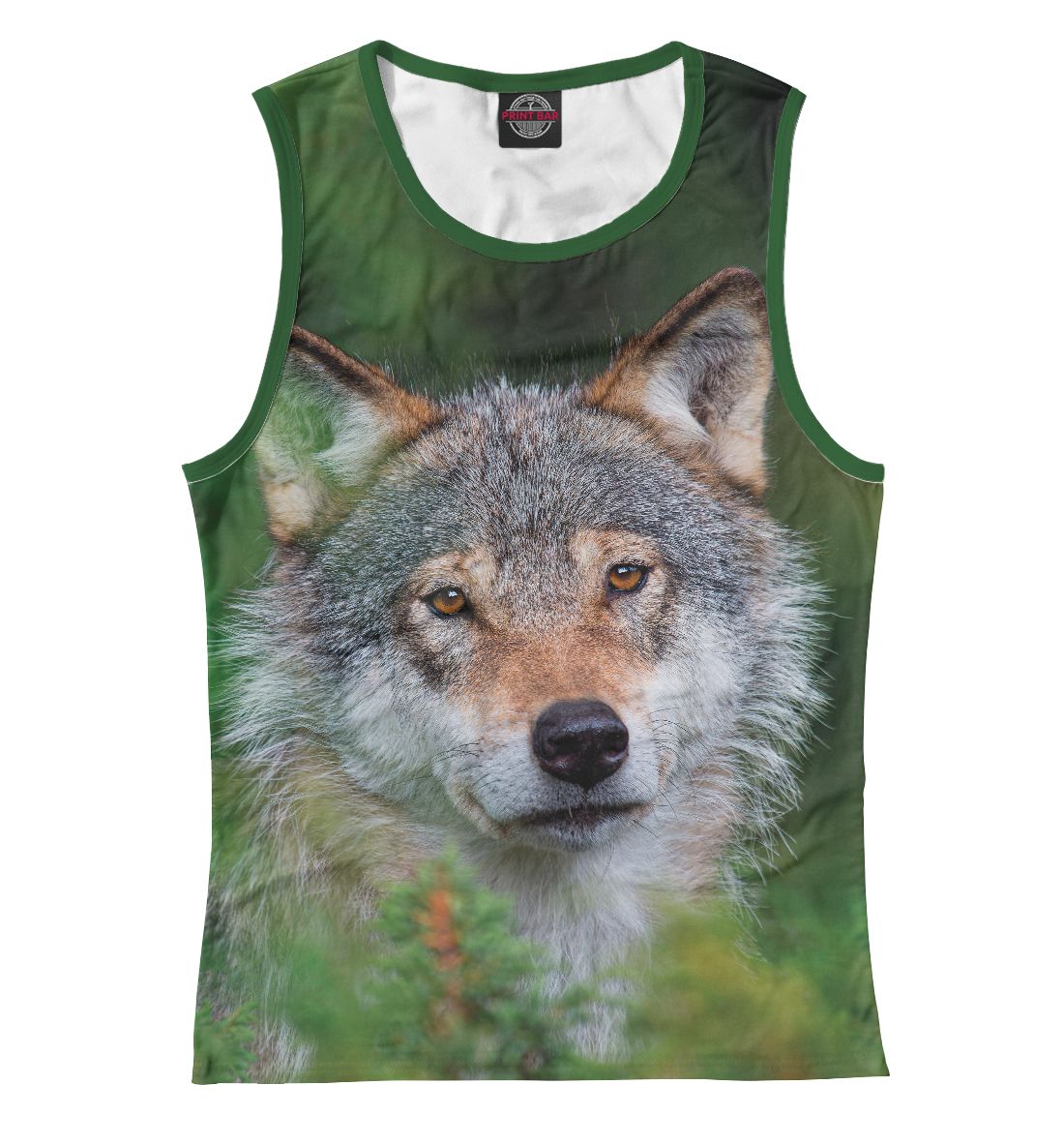 Детская майка для девочки с принтом «Волк в зеленом лесу»