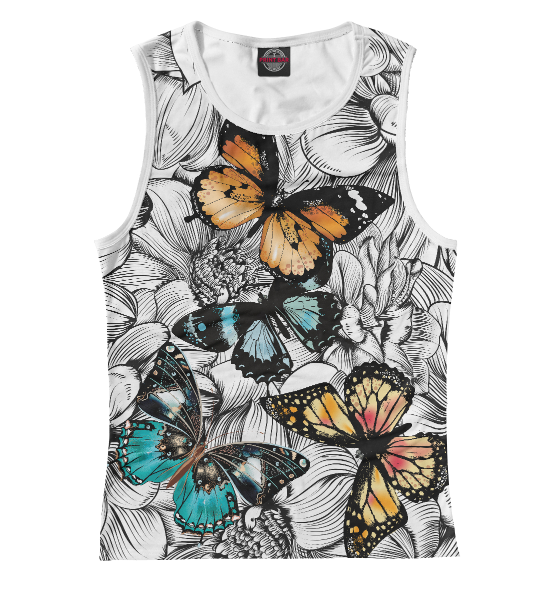 Детская майка для девочки с принтом «Цветные бабочки»