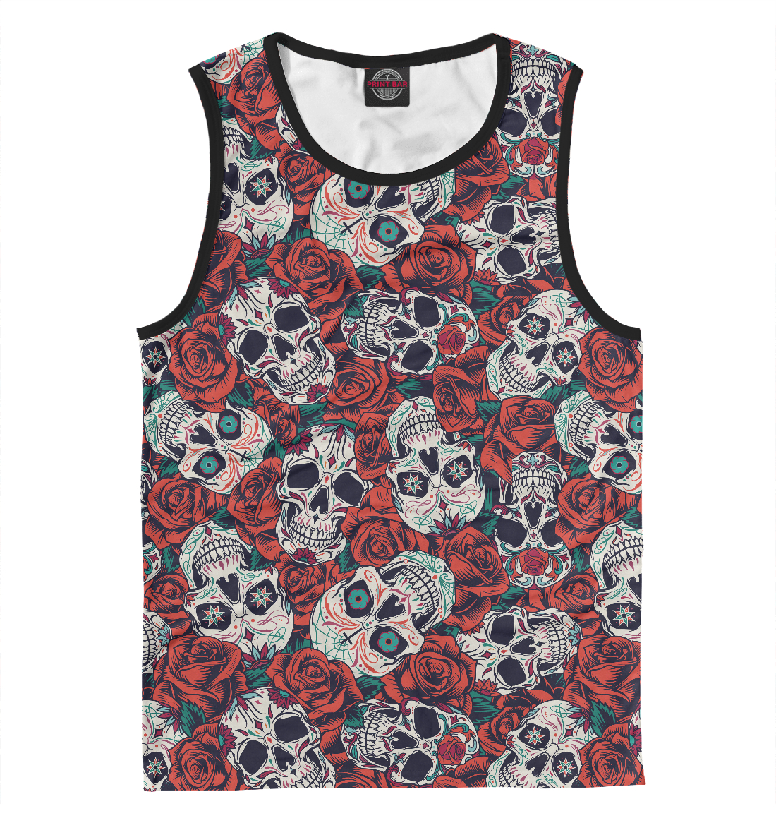 Детская майка для мальчика с принтом «Черепа в Розах»