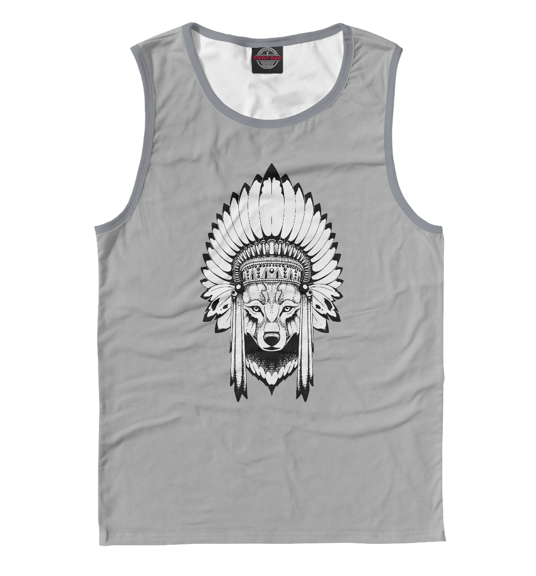 Детская майка для мальчика с принтом «Индеец волк на сером фоне»