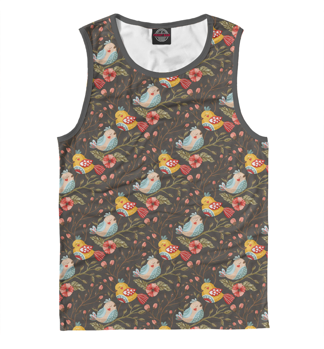 Детская майка для мальчика с принтом «Птички и цветочки»