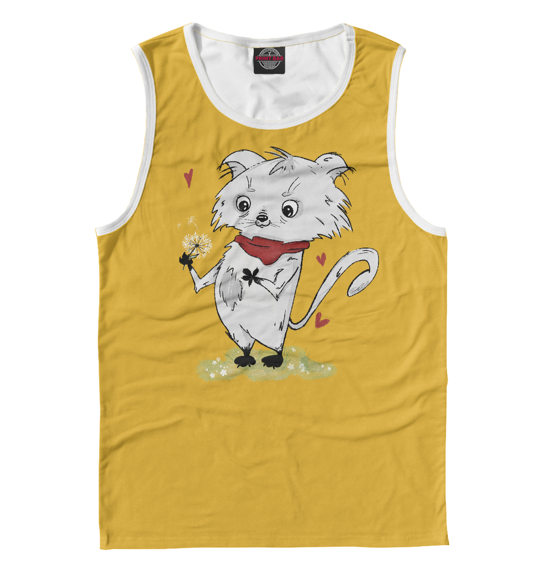 Детская майка для мальчика с принтом «Романтичный котик (желтый фон)»