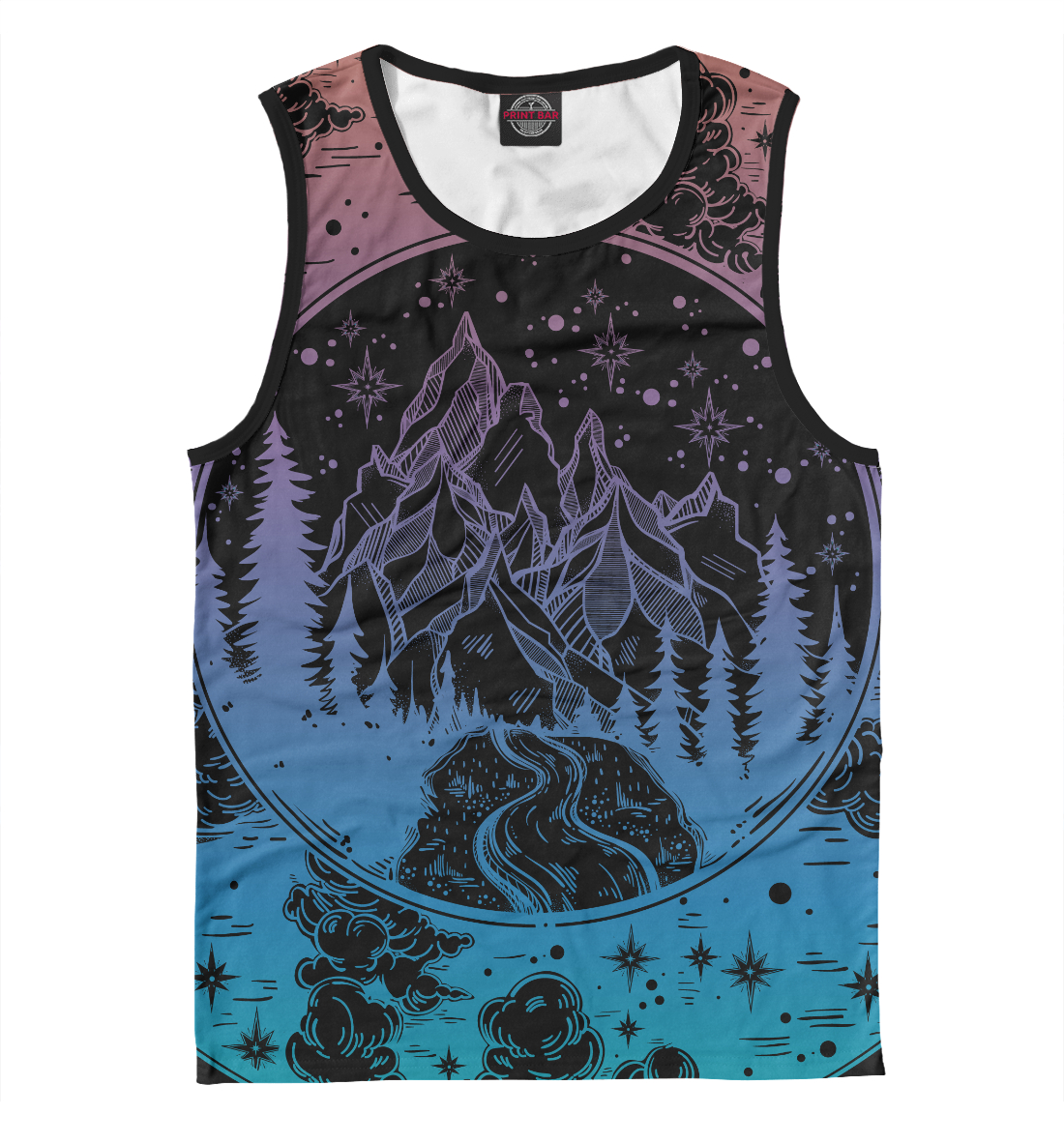 Детская майка для мальчика с принтом «Сосновый лес горный пейзаж»