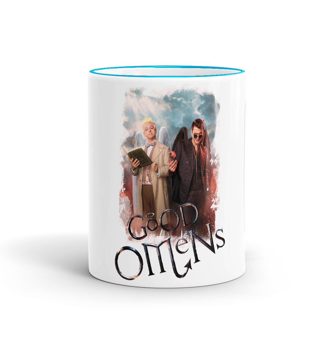 Кружка с принтом «Азирафаэль и Кроули белый фон»
