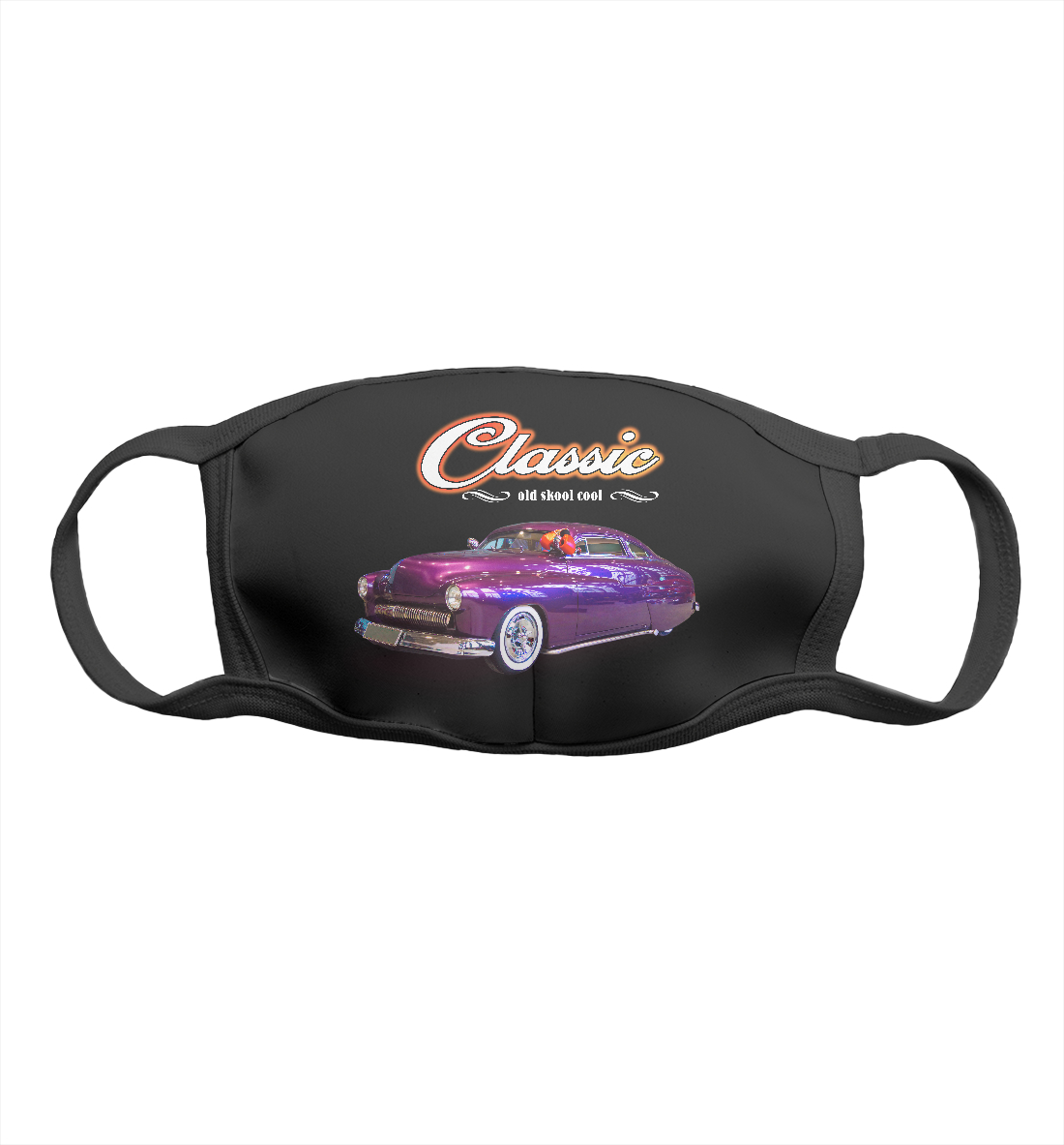 Маска тканевая с принтом «Американский олдтаймер Mercury на черном»