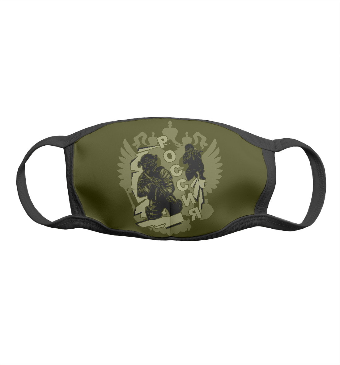 Маска тканевая с принтом «Герб и воины на оливковом фоне»