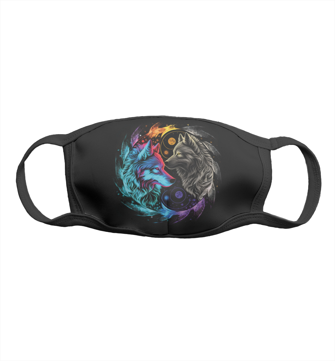 Маска тканевая с принтом «Инь-янь неоновые волки»