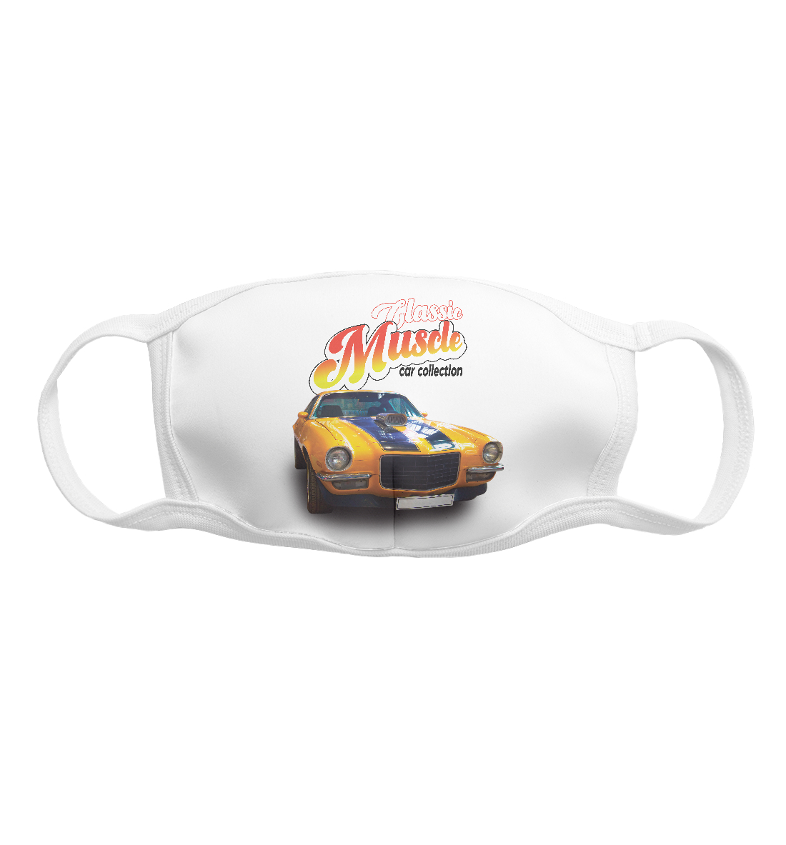 Маска тканевая с принтом «Маслкар Chevrolet Camaro на белом»