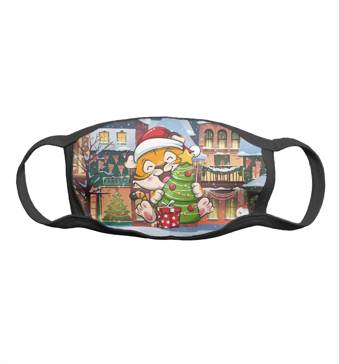 Маска тканевая с принтом «Милый тигренок с елочкой»