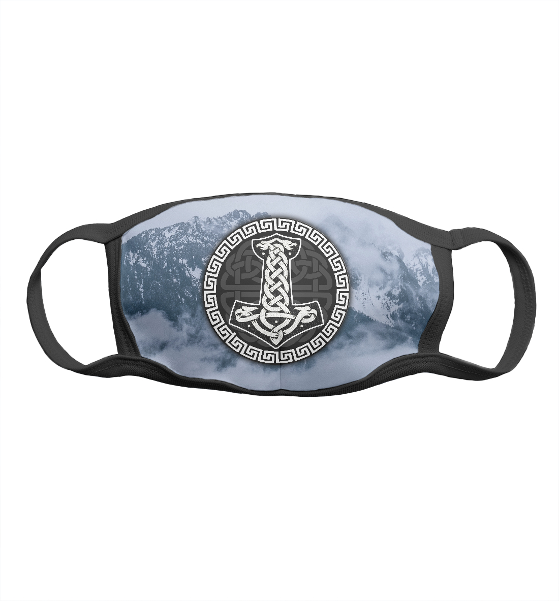 Маска тканевая с принтом «Молот Тора и скалы у моря в тумане»