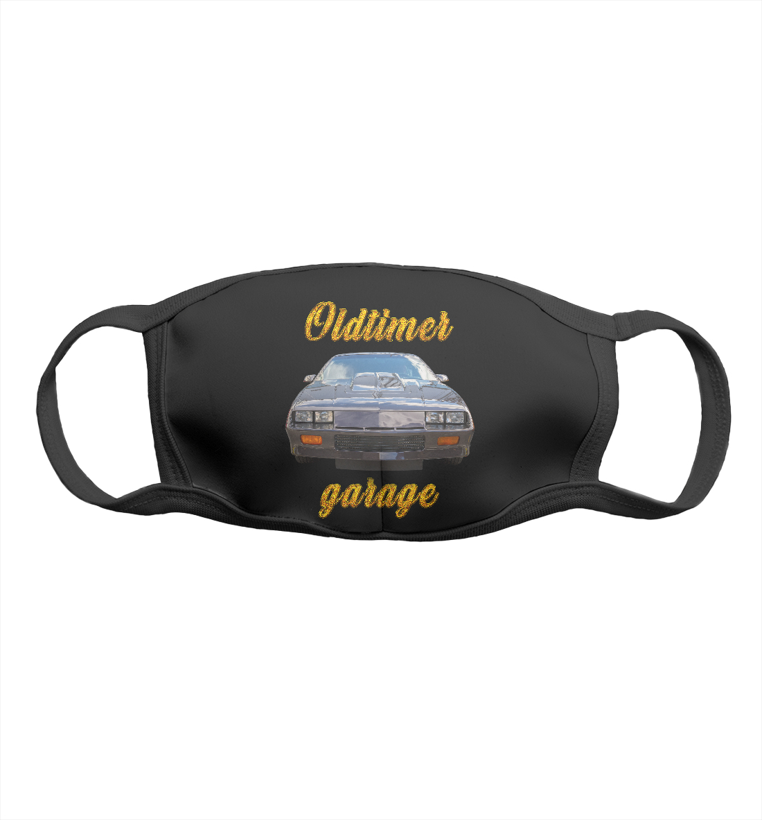 Маска тканевая с принтом «Ретро маслкар на черном фоне»