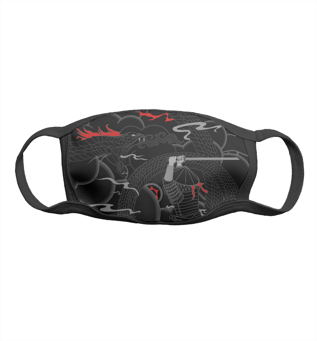 Маска тканевая с принтом «Самурай и змея ( темная )»