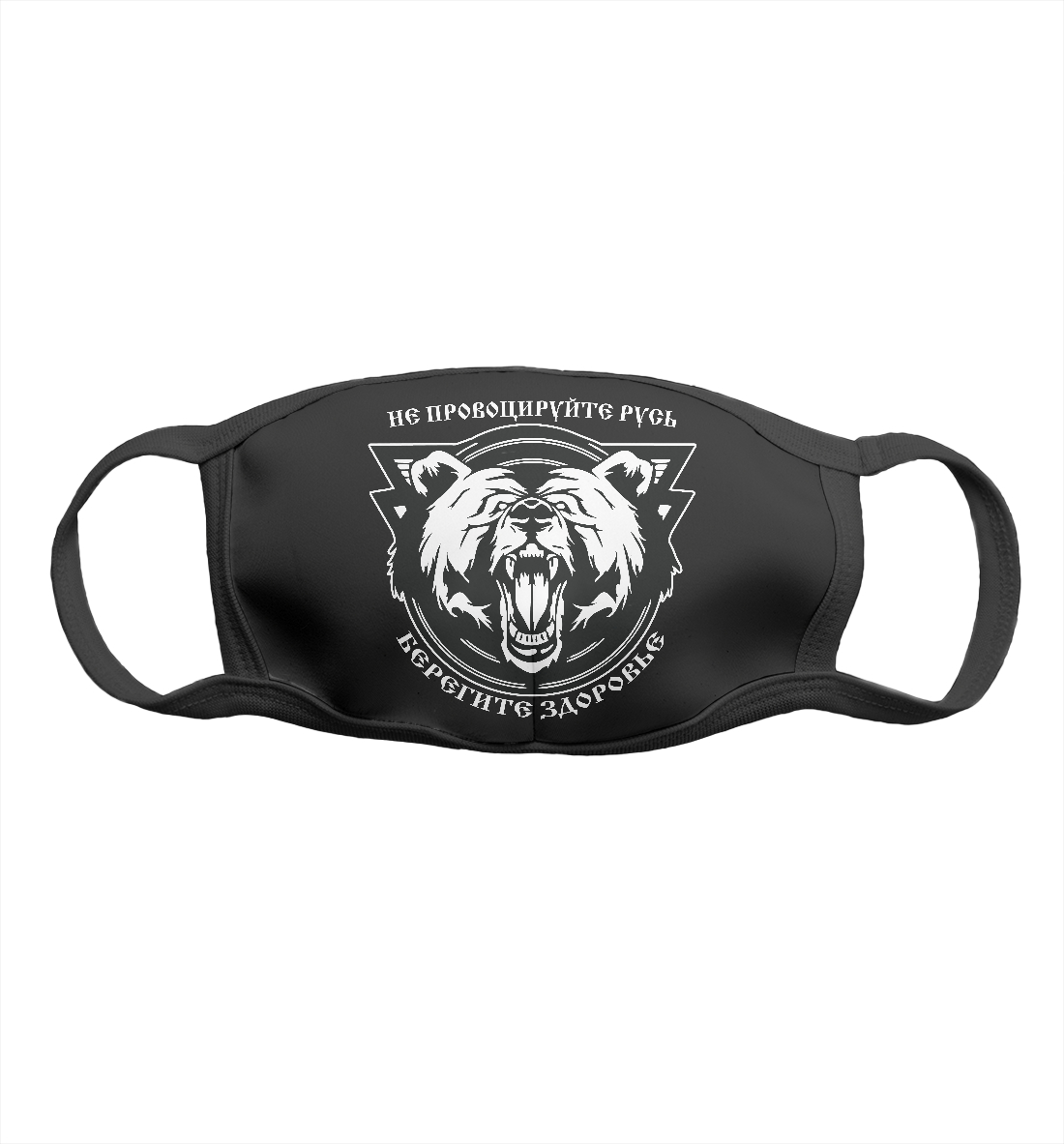 Маска тканевая с принтом «Славянский Медведь на чёрном»