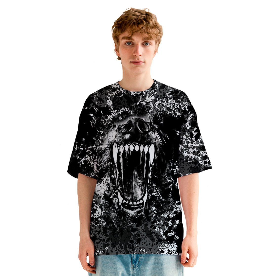 Мужская футболка оверсайз Волчья пасть