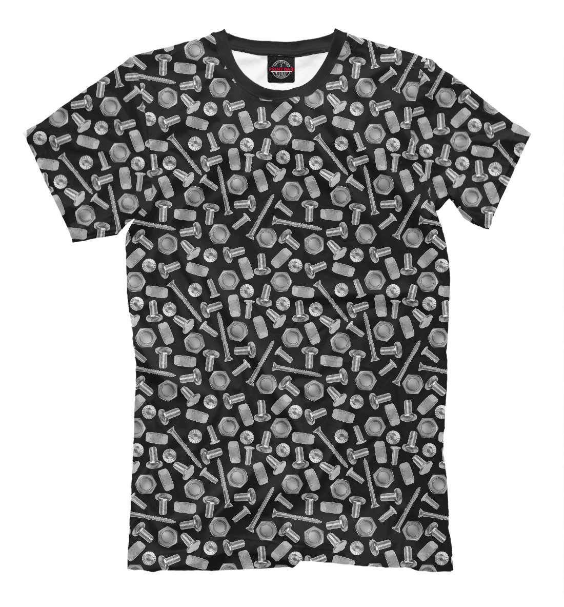 Мужская футболка с принтом «Болты и гайки на черном»