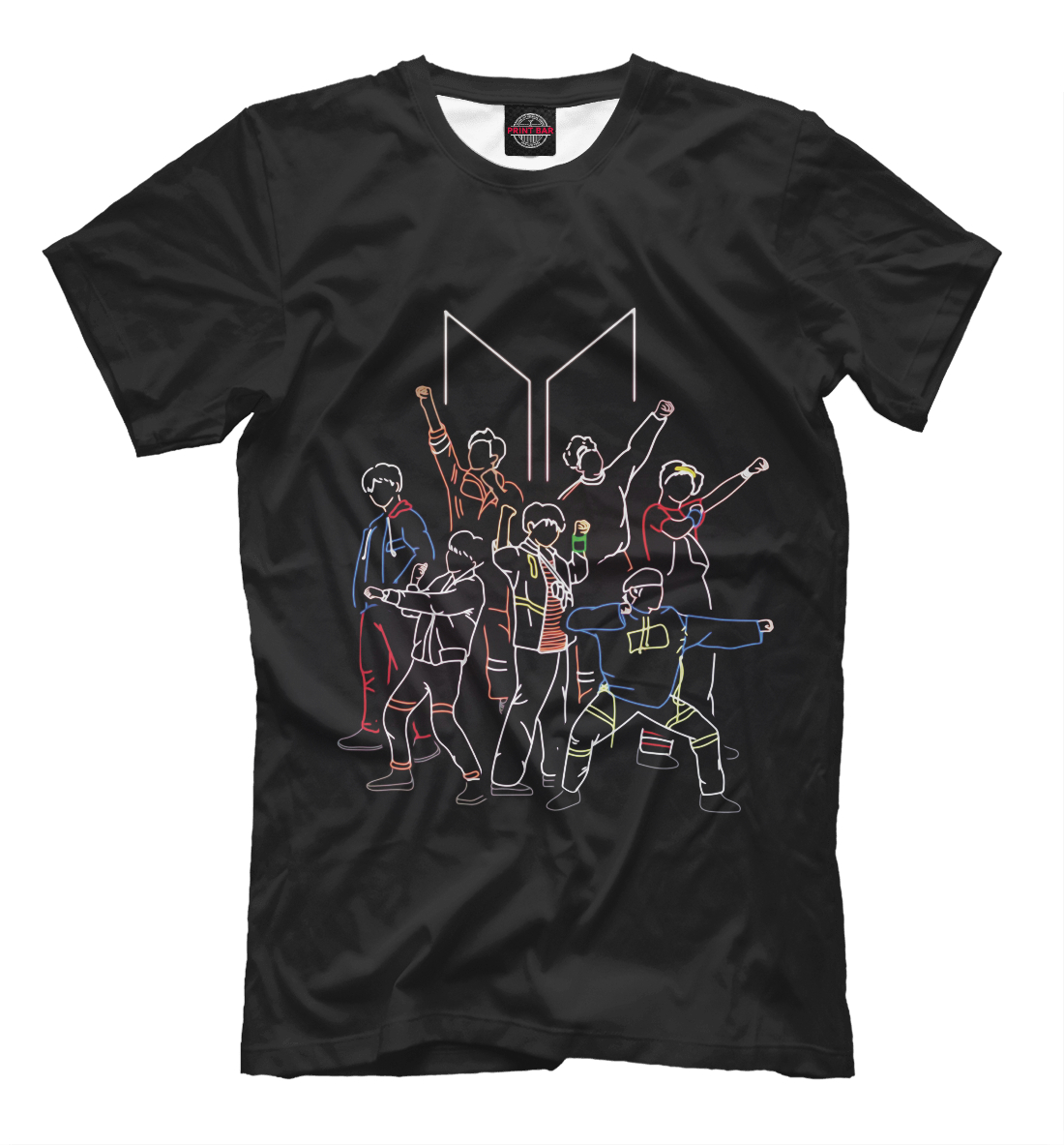 Print Bar представляет внушительную коллекцию мужских футболок БТС с изображениями всех участников. У нас вы можете купить футболку для мужчины с Джином, Чимином, Чонгуком, Шугой и другими участниками группы.