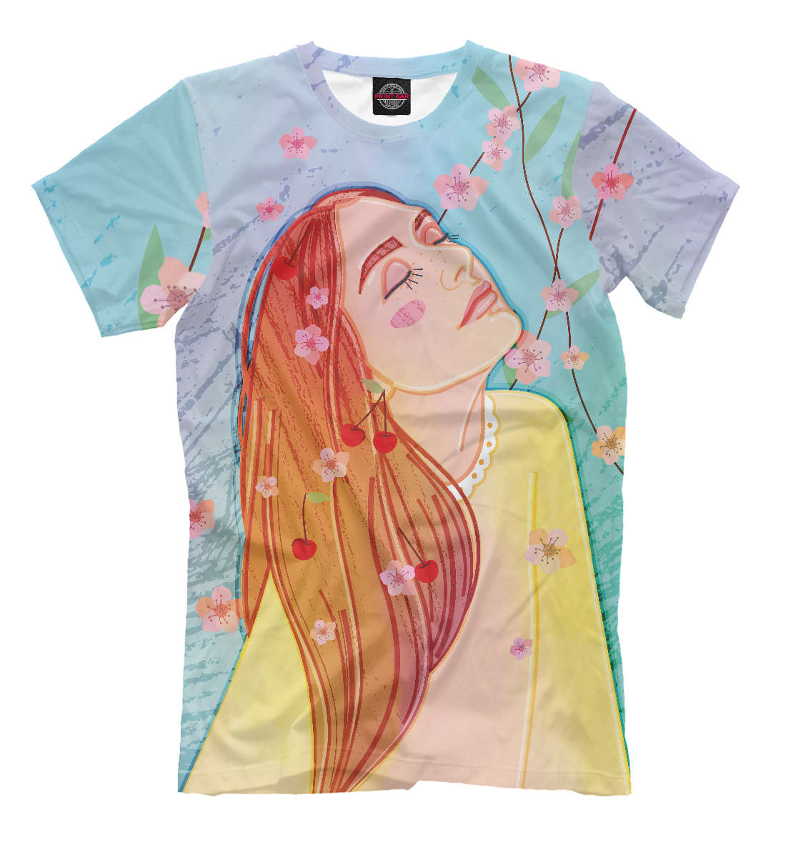 Мужская футболка с принтом «Девушка с закрытыми глазами в цветах»