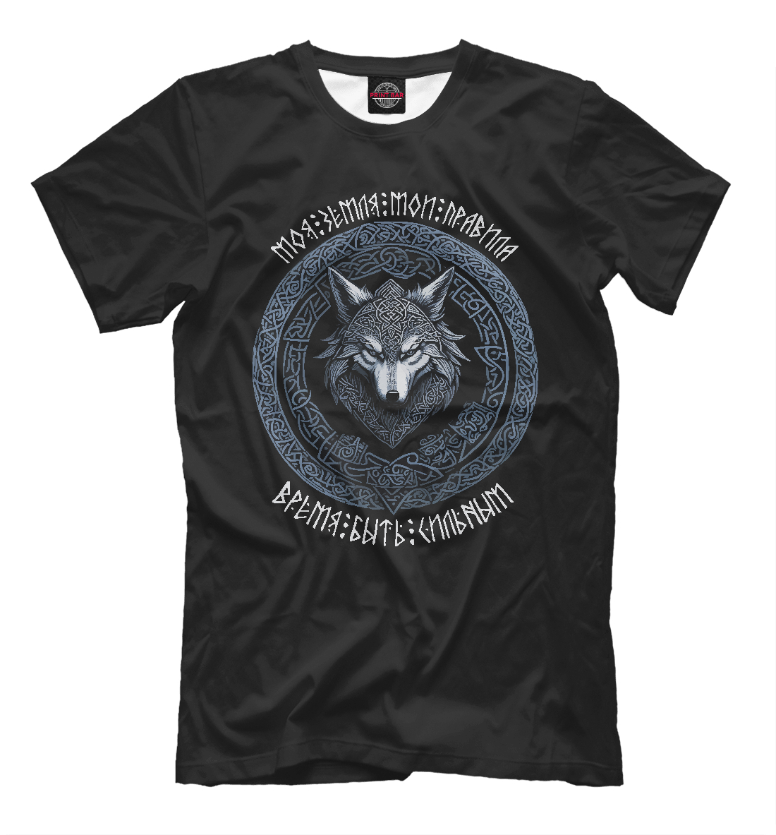 Мужская футболка с принтом «Лютый волк / Моя земля - мои правила»
