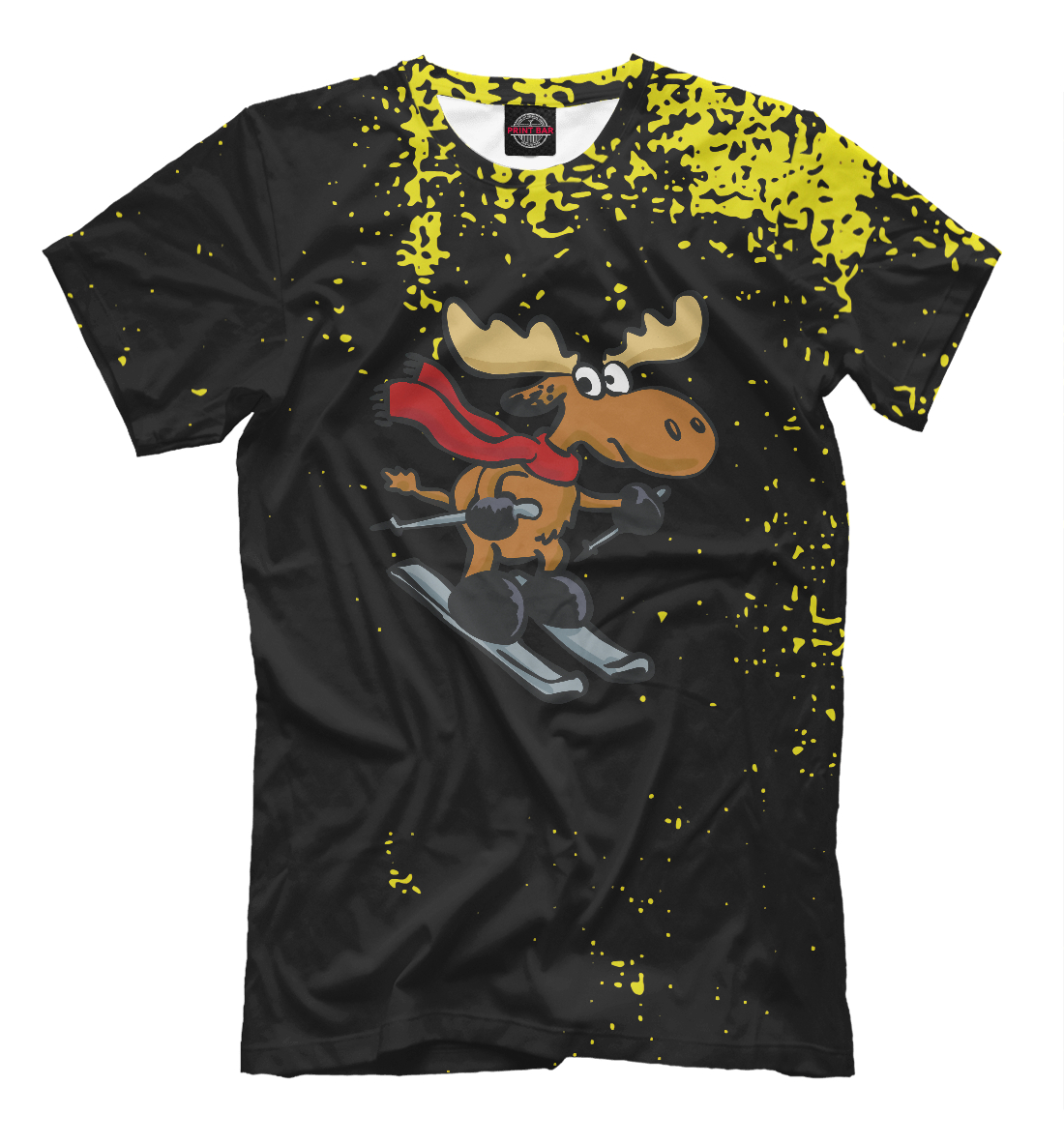 Мужская футболка с принтом «Moose riding ski cartoon»