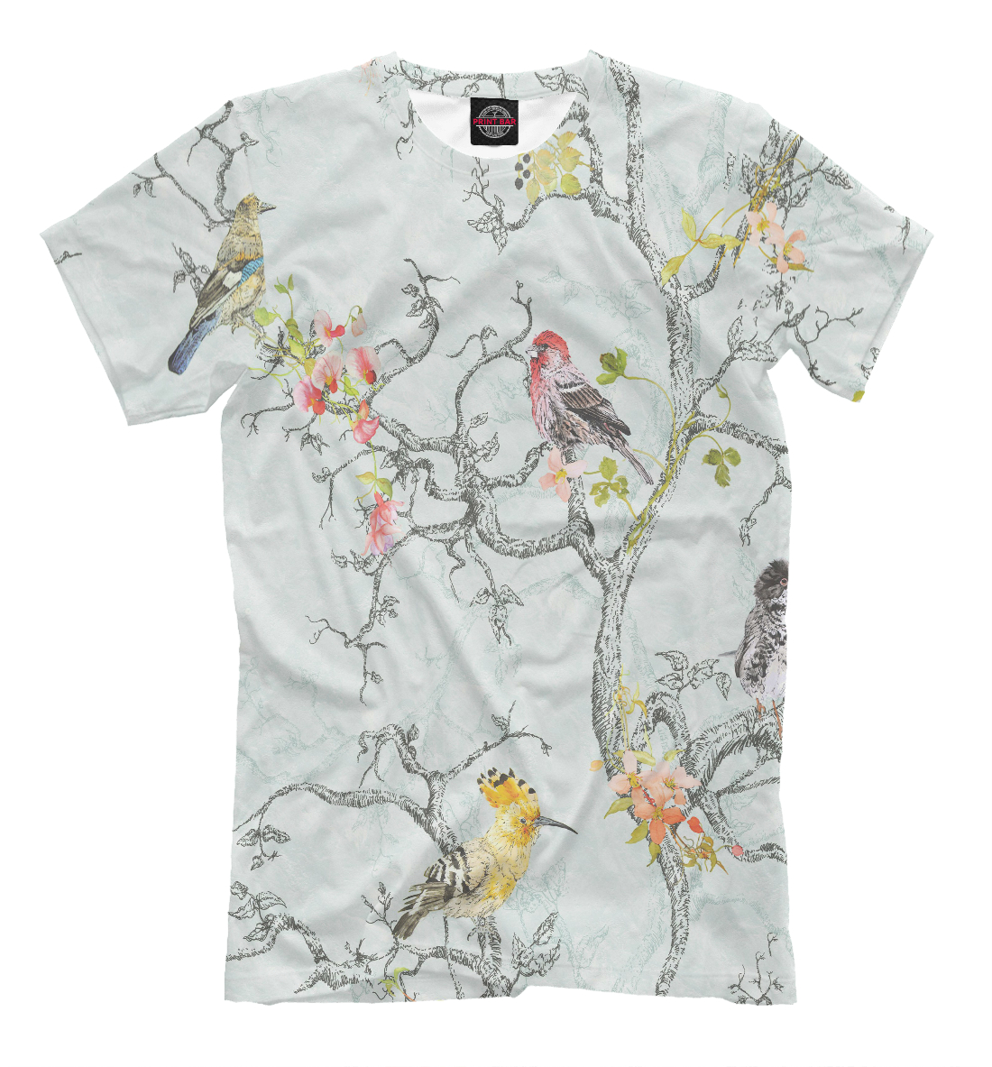 Мужская футболка с принтом «птицы на кусте»