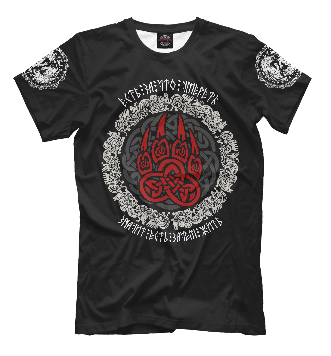 Мужская футболка с принтом «Символ-оберег волчья лапа (закон волка)»