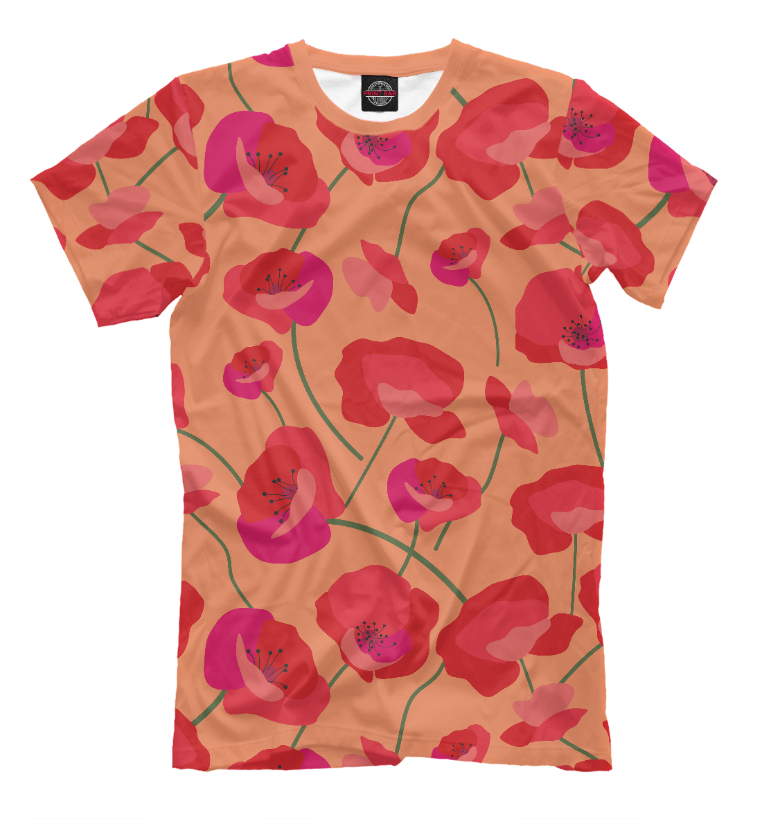 Мужская футболка с принтом «Узор с красными цветами мака»