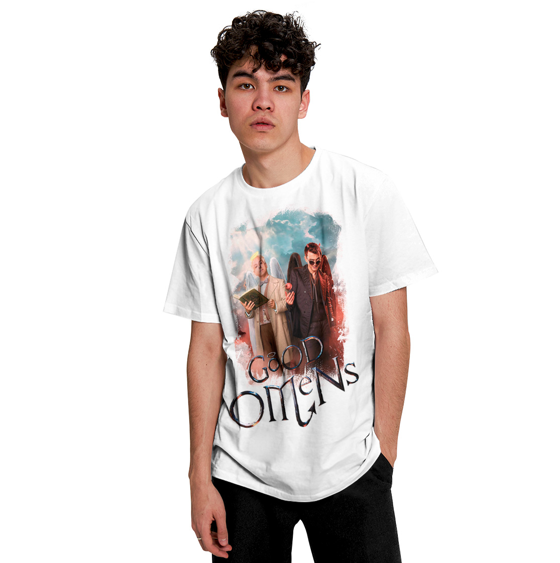 Мужская футболка с принтом «Азирафаэль и Кроули белый фон»