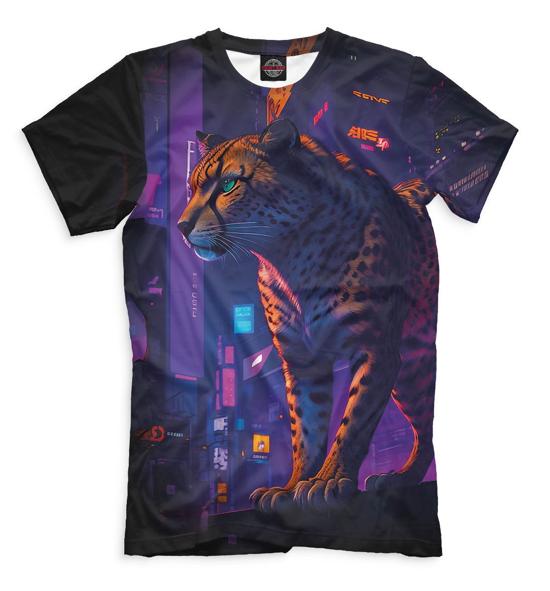 Мужская футболка с принтом «Гепард на фоне города»
