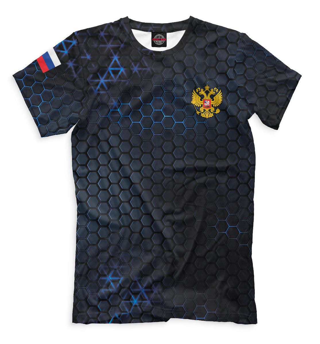 Мужская футболка с принтом «Герб России, соты»