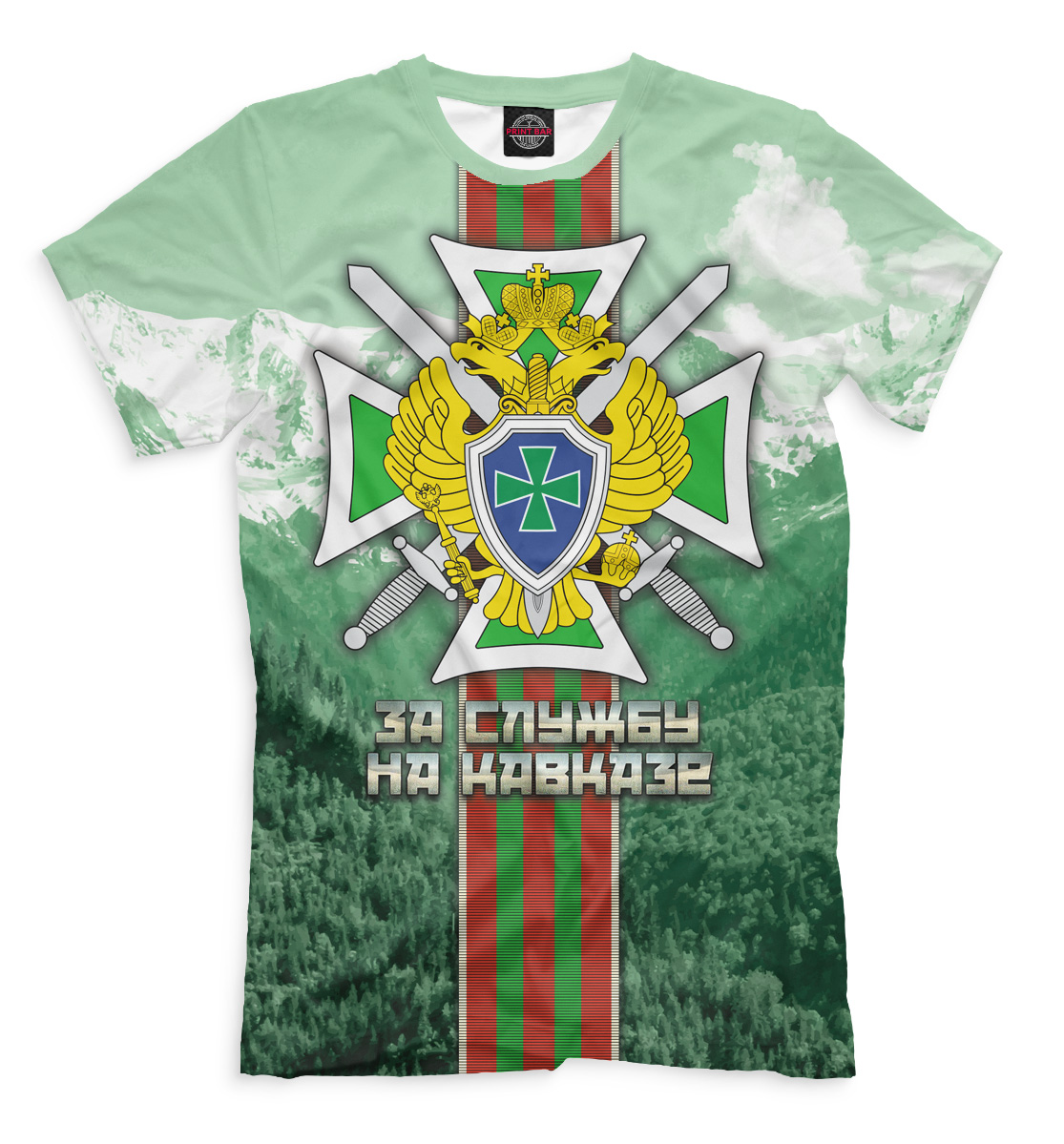 Мужская футболка с принтом «За службу на Кавказе»
