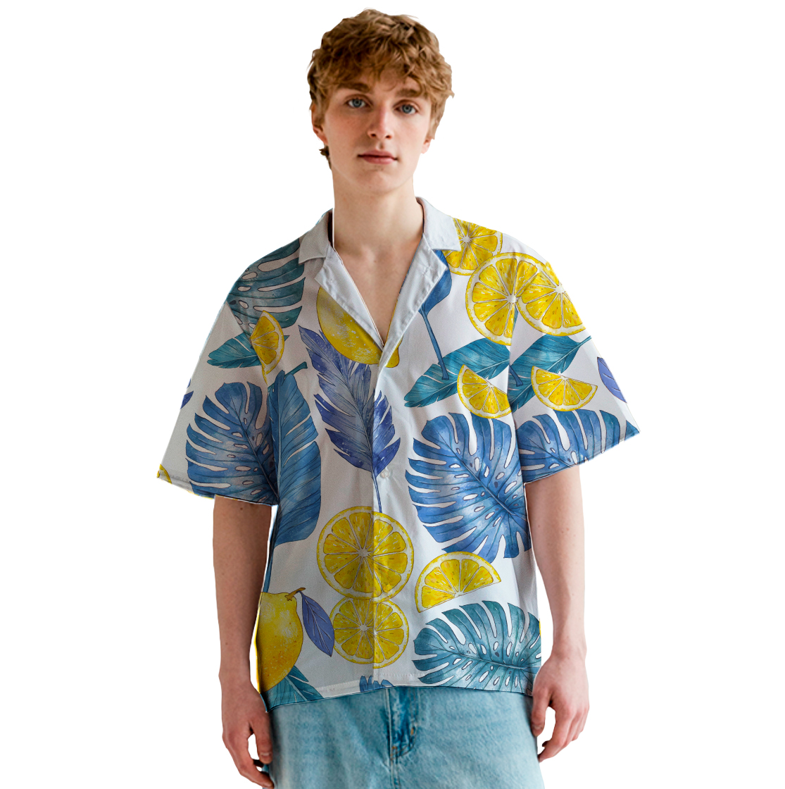 Мужская гавайская рубашка Монстера и лимоны