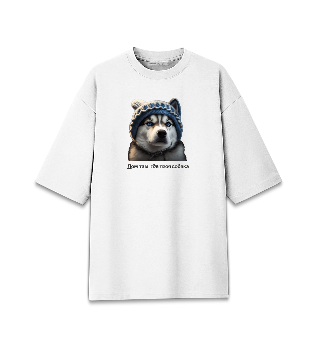 Мужская футболка оверсайз Дом там, где твоя собака. ХАСКИ