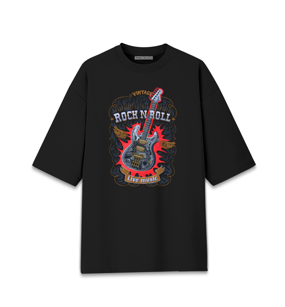Мужская футболка оверсайз Гитара стимпанк с надписью rock n roll
